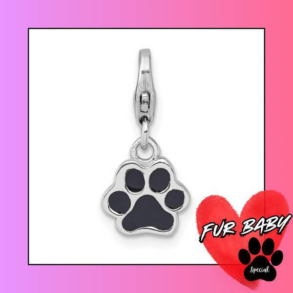 925 Rhodium & Enamel Finished Sterling Silver Paw Print Charm.