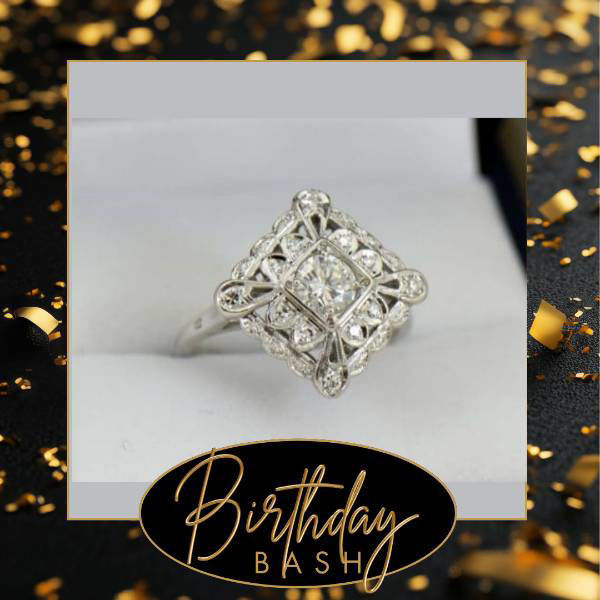 14Kt. Rhodium Finished White Gold Vintage Circa 1950 Diamond Ring.
