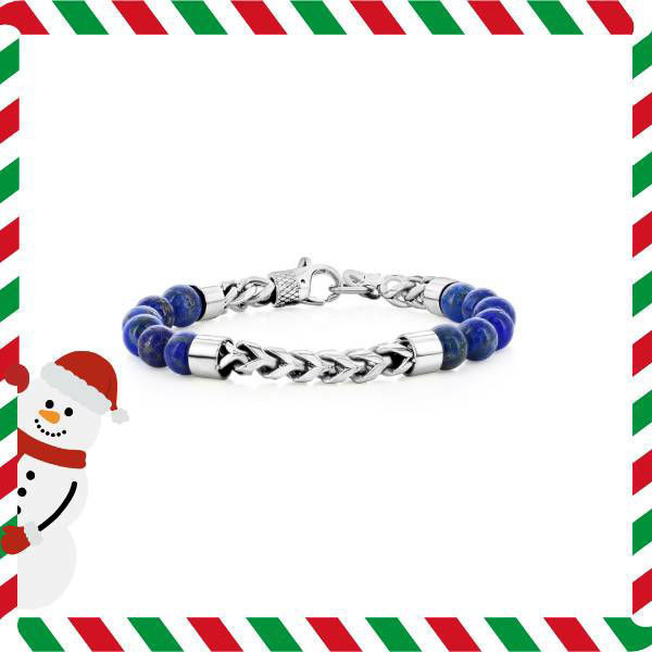 8 mm Genuine Lapis Bead & Chain 9 inch Bracelet.