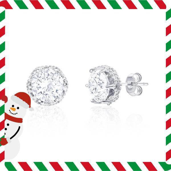 925 Rhodium Finished Sterling Silver 10 mm LG White Sapphire Royalty Studs.