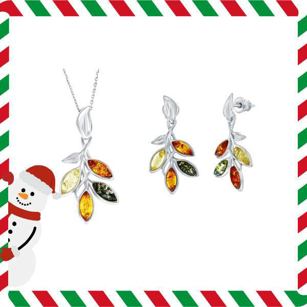 925 Rhodium Finished Sterling Silver Multi-Colored Leaf Pendant and Earrings Set.