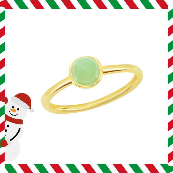 925/14Kt. Yellow Gold Finished Sterling Silver Genuine Jade Bezel Set Ring Sizes 6-9.