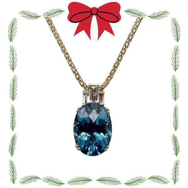 This elegant over-the-top pendant necklace is a stunning piece of jewelry that combines luxury and sophistication. Crafted in 14 karat yellow gold, the pendant features a striking combination of genuine London blue and white topaz gemstones, totaling 11.95 carats. The deep, captivating hue of the London blue topaz is beautifully complemented by the sparkle of the white topaz, creating a harmonious and eye-catching design. The pendant is gracefully suspended from an 18-inch chain, which is 14 karat gold plated over silver, adding an extra touch of elegance without adding to the price. This piece is perfect for adding a dash of color and sophistication to any outfit or for gifting to someone special.