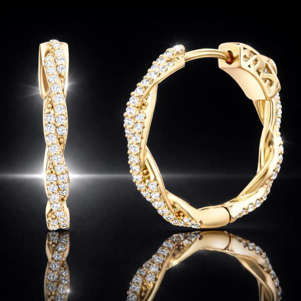 14 kt. Yellow Gold over Silver 2.25 ctw. LG White Sapphire 21 mm Twisted Hoops
