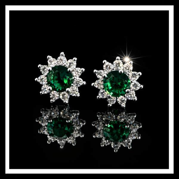 925 Rhodium Finished Sterling Silver 2.66 ctw. Green & White Moissanite Studs