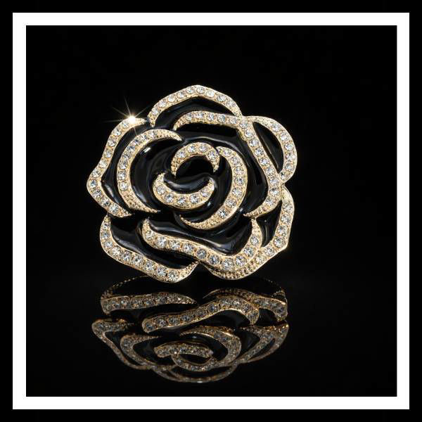 40 mm Black Enamel Swarovski Crystal Trimmed Rose Brooch