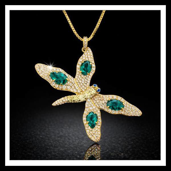 14 kt. Yellow Gold 3.55 ctw. Tsavorite, Sapphire & Yellow & White Diamond Dragonfly Pendant & 22" Chain by Effy