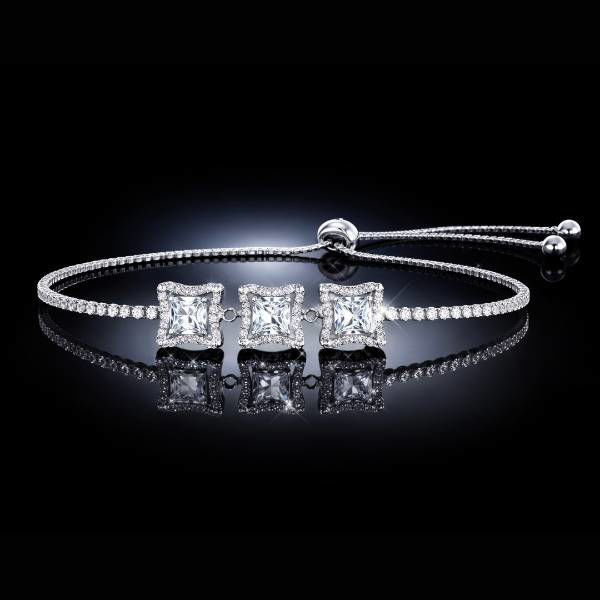 925 Triple Rhodium Finished Silver LG White Sapphire Bolo Bracelet