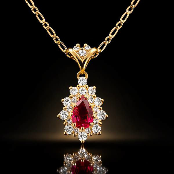 14 kt. Yellow Gold Genuine 1.58 ctw. Ruby & Diamond Pendant 20 Inch Chain