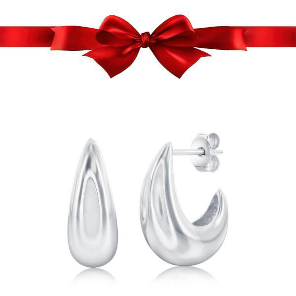 925/14 kt. Sterling Silver 17mm Puffed Huggie Hoop Earring