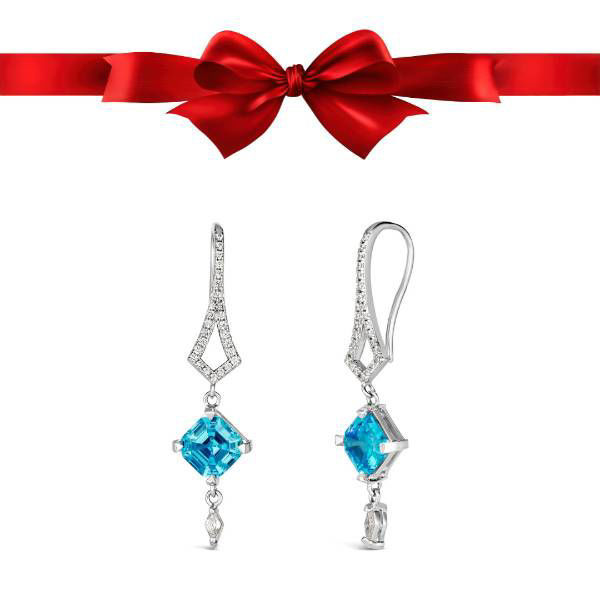 925 Platinum Finished Sterling Silver 4 ctw. Blue & White Diamond Crystalline Earrings by Anna Zuckerman & Kathy Hilton