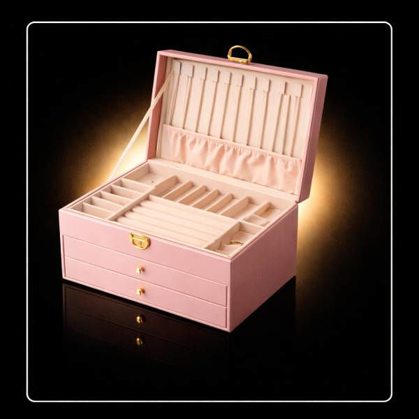 Elegant on the outside and brilliantly organized within, this three-tier quilted leather jewelry box is designed to protect, display, and streamline your entire collection. Wrapped in smooth black quilted leather with refined gold-tone hardware, it brings timeless sophistication to any vanity or dresser—while maintaining a compact footprint measuring 8.8 inches wide × 5.3 inches high × 6.7 inches deep. The thoughtfully designed interior opens to reveal a removable top tray, ideal for rings, studs, and everyday essentials you reach for most. Beneath, two removable drawers glide out smoothly, offering generous space for bracelets, watches, necklaces, and statement pieces—each item neatly separated and easy to access. A soft, neutral velvet lining cushions and protects your jewelry, while the key lock closure adds an extra layer of security, making this box perfect for both home organization and travel peace of mind. Despite its compact size, the three-tier design maximizes storage without sacrificing elegance. Features: Three-tier design for efficient, space-saving organization Quilted leather exterior with gold-tone hardware Secure key lock closure Removable top tray for customizable storage Two removable drawers for versatile organization Soft velvet-lined interior to protect jewelry Compact yet spacious: 8.8" W × 5.3" H × 6.7" D Ideal for rings, earrings, necklaces, bracelets, and watches A refined blend of luxury and practicality, this jewelry box is a beautiful way to store your collection—and an exceptional gift for someone special. ?