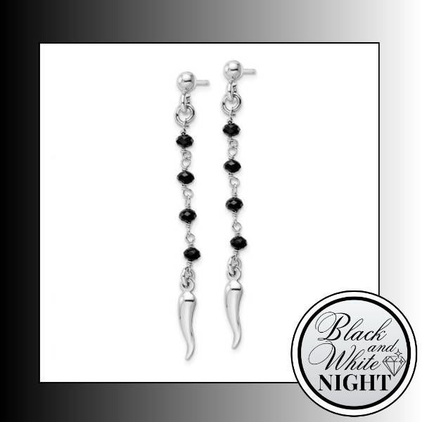 925 Triple Rhodium Finished Silver Faceted Glass Bead & Italian Horn Dangle Earrings.