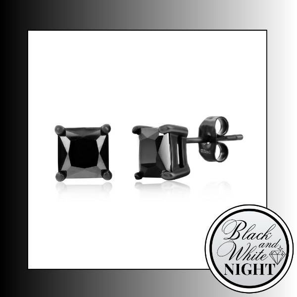 2 ctw. Lab Grown Princess Cut Black Diamond Stud Earrings in Black Rhodium Finished Stainless Steel.