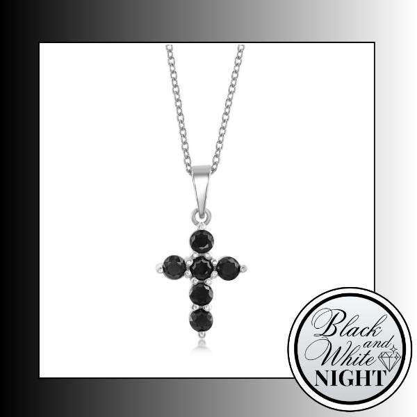 925 Triple Rhodium Finished Silver .50 ctw. Genuine Black Sapphire Cross Pendant.