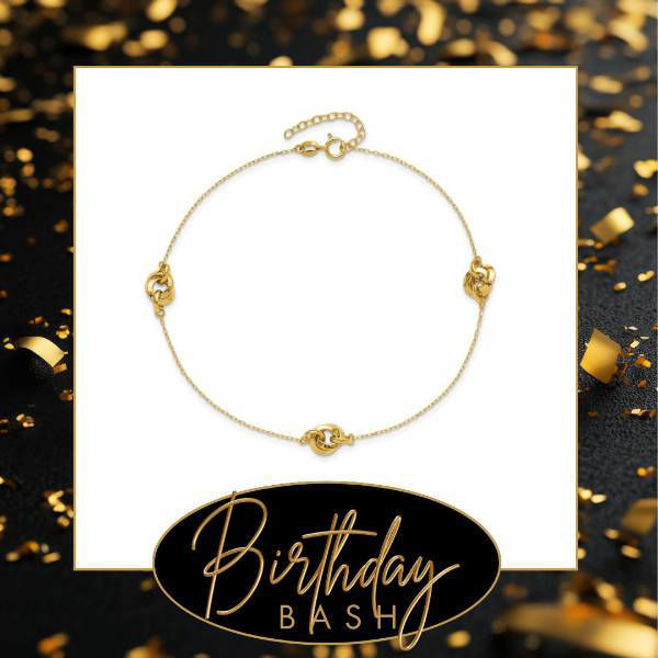 14Kt. Yellow Gold Italian Made 3 Station Fancy Anklet 9 Inches w/1 inch ext.