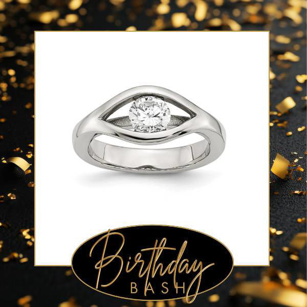 5 mm White Topaz Fashion Ring in Stainless Steel.