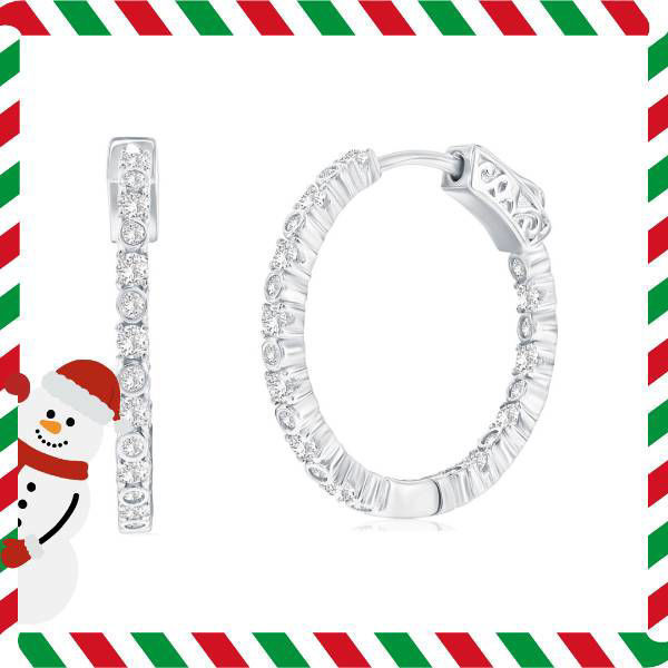 925 Rhodium Finished Sterling Silver 25mm - 150 ctw. White Topaz Bezel & Prong Set inside/outside Hoops.