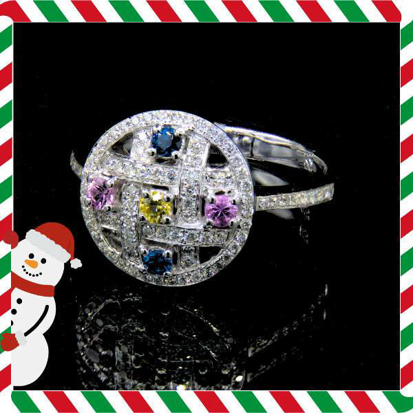18Kt. White Gold 1.50 ctw. Multi-Colored Sapphires & Diamond Ring.