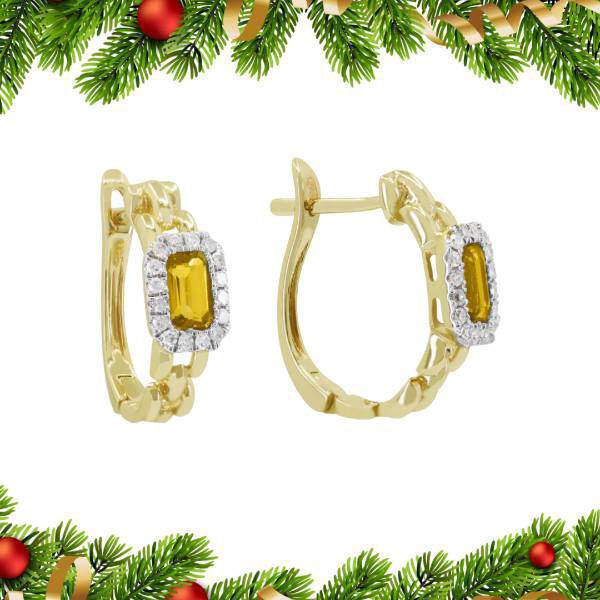 14Kt. Yellow Gold .87 ctw. Genuine Citrine & Diamond 16 mm Huggies by Madison L