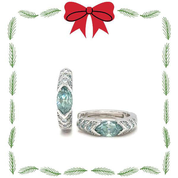 Item 1122 on the show but these will be number one in your heart tonight. .75 ctw of Genuine Moissanite. These exquisite huggie-style earrings are a stunning blend of luxury and elegance. Crafted from sterling silver with a triple rhodium finish, they boast a lustrous shine and increased durability. The earrings feature genuine blue marquise-cut centers and blue and white round moissanite that are prong set in channels Moissanite is known for their remarkable brilliance and fire that rivals diamonds. At 15 mm in size, these huggies offer a perfect balance of subtlety and sophistication, making them an ideal accessory for any occasion. Whether you're dressing up for a special event or adding a touch of sparkle to your everyday look, these earrings are sure to captivate and enchant at an unbelievable value.