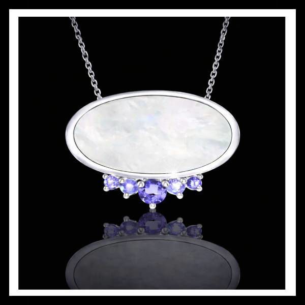 925 Rhodium Finished Sterling Silver 35 x 25 mm 1.44 ctw. Mother-of-Pearl & Gemstone Pendant