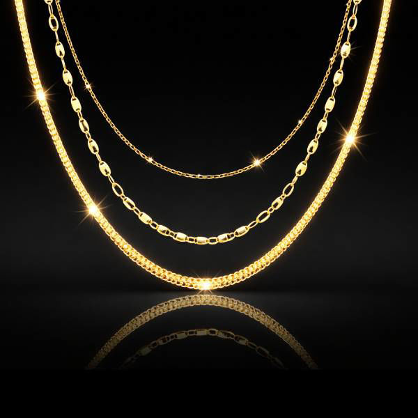925 Fine Italian Silver Bonded 14kt Yellow Gold Finish Made in Italy 18" Length Each Three Distinct Designer Chains Perfectly Coordinated Layered Look Includes: Diamond Cut Cable, Polished Mirror Link, and Diamond Cut Popcorn Chains.