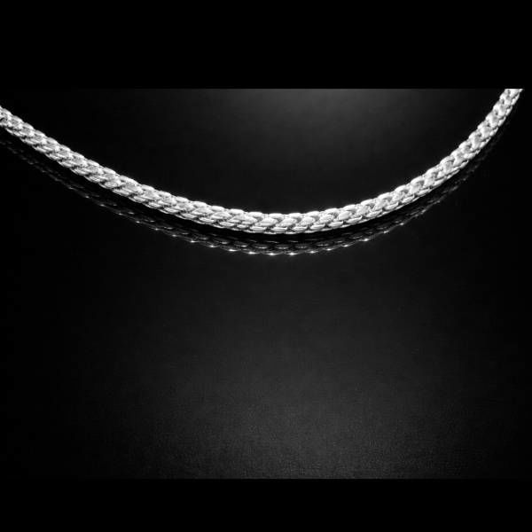 Rhodium-Plated Stainless Steel Width: 3mm Length: 22" Style: Woven Round Chain Finish: High Polish Color: Silver Style Number: 1240 Why You’ll Love It: Tarnish-resistant & low maintenance Strong, durable everyday wear Classic yet modern woven design Perfect for layering or wearing alone A timeless essential with a luxury look—built to shine day after day.