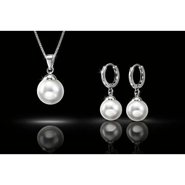 Rhodium finished for a bright, platinum-like shine 10 mm faux pearls with rich luster and smooth surface Perfectly matched pendant and earring set Lightweight, comfortable, and easy to wear Tarnish-resistant finish for long-lasting brilliance
