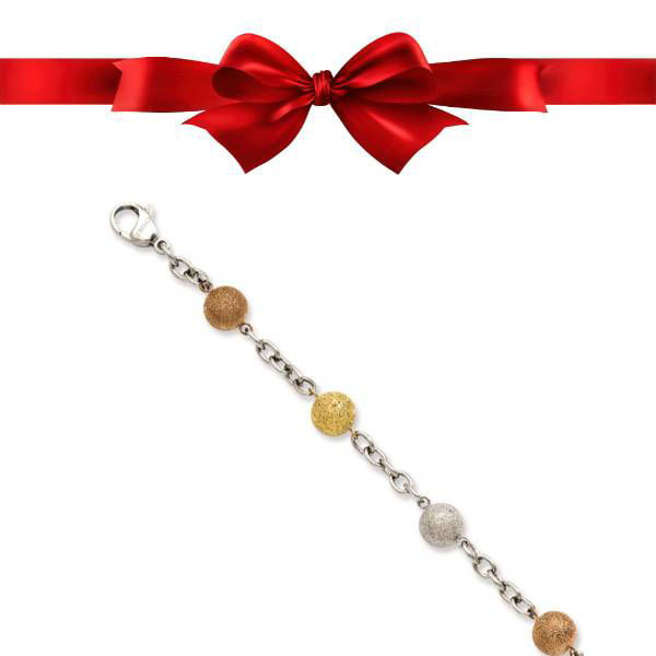 14 kt. Tri-color Gold Diamond Cut Stainless Steel Station Bracelet