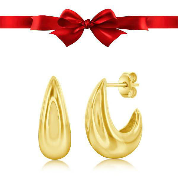 925/14 kt. Sterling Silver 17mm Puffed Huggie Hoop Earring